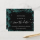 A girly and trendy Save the Date for a 40th (or any age)  A black background decorated with teal, green faux glitter dust. Personalise and add a date and name/age. The text: Save the Date is written with a large trendy hand lettered style script.