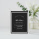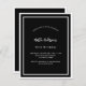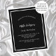 A modern, elegant and invitation. A black background decorated with white frames. Personalise and add a name and details. White text.