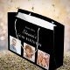 For a 50th (or any age) birthday. A classic black background. Personalise and add 3 of your own photos, a date, name and age 50. White text. The name is written with a modern hand lettered style script.