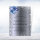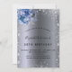 For an elegant 18th (or any age) birthday. A stylish dark faux silver metallic looking background. Decorated with faux glitter dust and blue florals. Personalise and add a name, age and party details. The name is written with a hand lettered style script