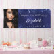 Celebrating a 21st (or any age) milestone birthday for a girl/woman. A dark blue background. The blue colour is uneven. Decorated with faux glitter dust. Personalise and add your own photo of the birthday girl. Use a vertical/portrait size photo. The text: The name in grey with a modern hand lettered style script. Personalise and add a name, age 21 and a date. Can be used both as welcome banner or party wall decoration.