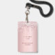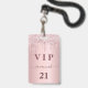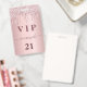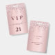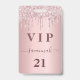 A modern, stylish and glamourous badge for a 21st (or any age) birthday party. A blush pink gradient background with faux glitter drip, paint dripping look. With the text: VIP. Personalise and add a name, age, party details on the back. The name is written with a modern hand lettered style script with swashes. To keep the swashes only delete the sample name, leave the spaces or emoji's in front and after the name.