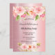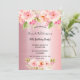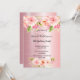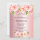 An elegant invitation card for a 50th or any age birthday party. With contemporary pink, peach and coral coloured watercolored dahlia flowers as decoration. A girly dusty pink background. The name is written with black hand lettered style script.