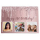 For a girly and glamourous 21st (or any age) birthday. A blush pink background with faux glitter drips, paint dripping look. Personalise and add 3 photos and age 21.
