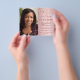 On front: Add a vertical size photo. An elegant blush pink gradient background colour, decorated with stars. Personalise and add a name and details.