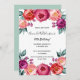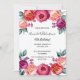 An elegant invitation card for a 50th (or any age) birthday party. With contemporary blush pink, purple and rose gold coloured watercolored flowers, florals as decoration. A chic white background. The name is written with black hand lettered style script.
