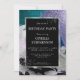Birthday Party | Bold faux metallic textured brush strokes in an abstract pattern in shades of pearl white, plum, teal, violet, lilac colour palette with silver inset accented with double silver frame with silver fleck spatters - this is a bold design and will most definitely garner attention. Pairs well with your lavender and aqua, teal, lilac, orchid or plum wedding theme. Looks great on all paper types but really shines on the semi gloss paper choice. Our template is easy to customise, but if you need help feel free to contact us. Original paint stroke design created by © WhimsicalArtwork™