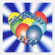 Birthday Boy text over colourful balloons on blue gradient background. Available for round stickers also.