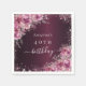 For an elegant 40th (or any age) birthday party. A burgundy faux metallic looking background colour. Decorated with pink faux glitter dust and pink florals, flowers. Personalise and add a name and age. Birthday is written with a modern hand lettered style script with swashes.