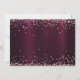 A Save the Date card for a 21st, (or any age) birthday party. A deep burgundy metallic looking background decorated with rose gold faux glitter, sparkles. Personalise and add a date and name/age. The text: Save the Date is written with a hand lettered style script with swashes.