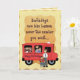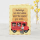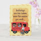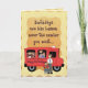 "Birthdays are like busses: never the number you want!" A funny birthday card, showing a large red bus with "happy birthday" written on the side. there´s lots of passengers looking out of the windows, waving and holding flowers, and a boy holding a birthday gift standing outside with the driver. A humourous birthday card, customisable by putting your own text inside.