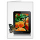Tree Nymph butterfly on an electronic tablet with an orange pansy photo for general birthday.
