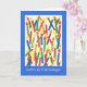 A brightly coloured Birthday Card with candles and 'Happy Birthday' in Swedish, from a handpainted paper collage by Judy Adamson. The inside is left blank for your own message.