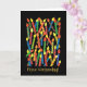 A brightly coloured Birthday Card with candles and 'Happy Birthday' in Danish, from a handpainted paper collage by Judy Adamson. The inside is left blank for your own message.