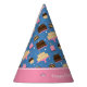 Add a custom touch to your child's birthday party with this adorable personalised paper party hat. Hat has a pattern of cakes with candles on a blue and pink background. Add a custom message, such as happy birthday and your little one's name.