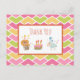 A birthday thank you postcard. Designed with a cute illustration of a smiling lion wearing a party hat, a fuzzy sheep with birthday balloons and a birthday cake with 3 candles.. Set on a pink, green and yellow geometric pattern. Perfect for 3 year old's birthday but also good for birthdays of all ages. Custom message on the back which can be changed or left as is.