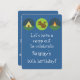 This invitation features three circle vector graphics of a tent, campfire, and a squirrel with a nut. The blue background and all of the text can be customised as desired.
