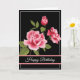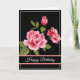 Birthday card shown with a black background and pretty pink roses.