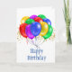 This happy birthday card is shown with a festive celebration of colourful balloons print.