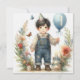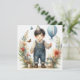 The card celebrates the birthday of a little boy who is turning 1. It features flowers, a cake, and butterflies; the back has a small version of the front image and plenty of room to write a message. AI Bing assisted in the creation of the card.