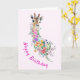Birthday Card Colourful Flowers Bouquet Giraffe