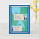 The colours on the card are blue, green and beige.