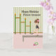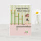 Birthday card for your future gymnast. The design is a young girl on a balance bar, with other items for training. The wallpaper is striped green, and the floor is a light peach color. Thanks to the Hungryjpeg for some of the elements in the design.