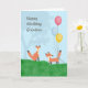 Grandson Birthday card with two cute foxes, three colourful balloons, green grass and a tree on a light blue background. Thanks to the hungryjpeg for some of the elements in the design.