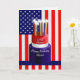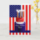 Birthday card in red, white, and blue with a cake, candles, and a USA Flag in the background. Thanks to Pixabay and the Hungryjpeg for some of the elements in the design. All the words on the card can be changed.