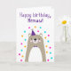 Birthday Card for Memaw. If you call your grandmother Memaw instead of Grandma, this birthday card is perfect for her. Your memaw will love this birthday card's cute, modern, colourful, Scandinavian-style design that features a brown and grey teddy bear cub with a purple party hat and bowtie and pink, yellow, and blue confetti with the text "Happy birthday, Memaw!"