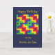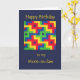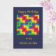 A Birthday Card for a mother-in-law, with a bright and colourful abstract patchwork design from cot-quilt by Judy Adamson.