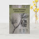 Birthday card for your Parish Priest. The design has a green and grey grunge background, a pine tree branch, pine cone, and three crosses. Thanks to Design Cuts for some of the elements in the design.
