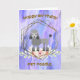 Birthday card for your pet poodle. The design is a grey poodle on a mixed lavender and purple background, in a gold coloured frame, standing on flowers. Cute card for that sweet poodle. Thanks to Design Cuts, the Hungryjpeg and Creative Fabrica for some of the elements in the design.