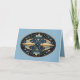 The design is two faux gold fish swimming towards each other with other zodiac symbols. The card also has faux gold stars surrounding the fish.