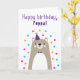 Birthday Card for Poppa. If you call your grandfather Poppa instead of Grandpa, this birthday card is perfect for him. Your poppa will love this birthday card's cute, modern, colourful, Scandinavian-style design that features a brown and grey teddy bear cub with a purple party hat and bowtie and pink, yellow, and blue confetti with the text "Happy birthday, Poppa!"