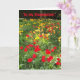 A bright and colourful Birthday Card for a stepmother, with a field of red, orange and yellow tulips, from a photograph by Judy Adamson. Don't forget that you can customise the inside greeting.