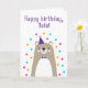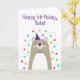 Make this card customisable! Click "Edit Design", "Inside Bottom/Right: Text & Images", "Text", and "Add text" to write your own custom, personalised message to Tutu inside!