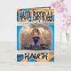 Birthday card with a DJ on the decks and Raver writing, a unique design by physical alteration and sold exclusively by Zazzle
