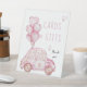 Cards and Gifts Table Sign with watercolor car and bunch of pink balloons. Cute trendy design for your little sweetheart's valentine birthday or a love heart themed party at any time of the year. Please message me if you would like any matching products.