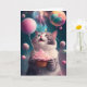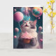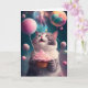 Birthday card featuring a cute cat with a pink cupcake and pink balloons. This card can easily be transferred to other sizes and formats, allowing you to customise it to perfectly suit your needs.