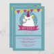 This white cat is ready to party! She wears a party hat and has a noise maker in her mouth. Party flags trim the upper border of the invitation. (<a href='http://www.freepik.com/free-vector/nice-birthday-cat-card_897590.htm'>Designed by Freepik</a>). <br/><br/>The card is easy to customise with your wording, font, font colour, paper shape options and choice of six paper types.<br/><br/>Not exactly what you're looking for? All our products can be custom designed to meet your needs at no extra charge.<br/><br/>Simply contact us at askcottonlamb@gmail.com<br/><br/>Coordinating products available: Just ask us!