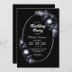 A moody black monochrome floral birthday celebration invitation.