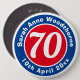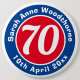 Commemorate a significant birthday with a badge which is decorated with the name of the recipient, as well as their age, and date of birth. 70th birthday. Age 70.