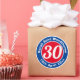 Commemorate a significant birthday with a Gift label sticker, which is decorated with the name of the recipient, as well as their age, and date of birth. Example shows 30th birthday.
