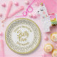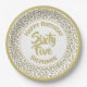 Birthday Cool Random Number Pattern Gold/White Paper Plate