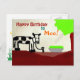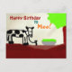 Birthday cow saying: "Happy birthday to Moo, celebrate with cheese!!"