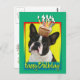 Celebrate a birthday with this whimsical Boston Terrier Dog Greeting Card. With a cupcake balanced on it's head, this design is sure to bring a smile and giggles! BTW, This design has several versions, with different background colours. There is also an invitation to a Party version.