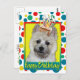 Celebrate a birthday with this whimsical Cairn Terrier Dog Greeting Card. With a cupcake balanced on it's head, this design is sure to bring a smile and giggles! BTW, This design has several versions, with different background colours. There is also an invitation to a Party version.