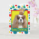 Celebrate a birthday with this whimsical Cavalier King Charles Spaniel Dog Greeting Card. With a cupcake balanced on it's head, this design is sure to bring a smile and giggles! BTW, This design has several versions, with different background colours. There is also an invitation to a Party version.