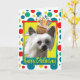 Celebrate a birthday with this whimsical Chinese Crested Dog Greeting Card. With a cupcake balanced on it's head, this design is sure to bring a smile and giggles! BTW, This design has several versions, with different background colours. There is also an invitation to a Party version.